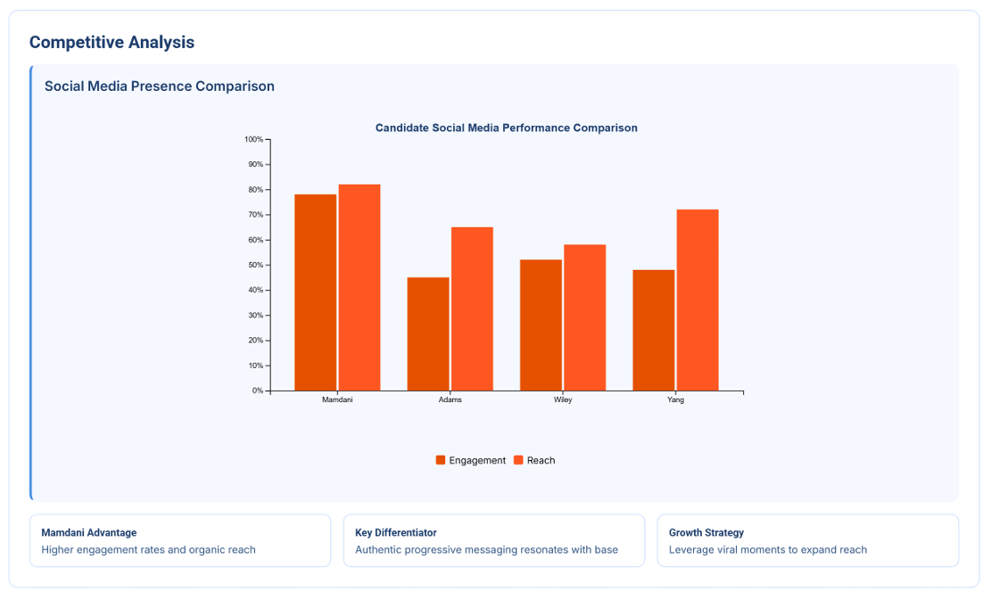Through this structured yet adaptive approach, Mamdani’s campaign achieved broad digital penetration without diluting its core identity. The strategy demonstrated that authenticity, reinforced by tactical precision and cross-platform coherence, could convert online engagement into real-world political momentum.
